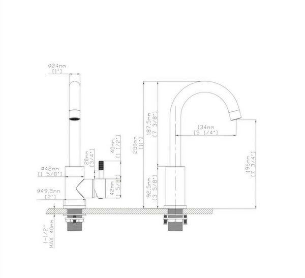 Hoogte kraan: 280 mm